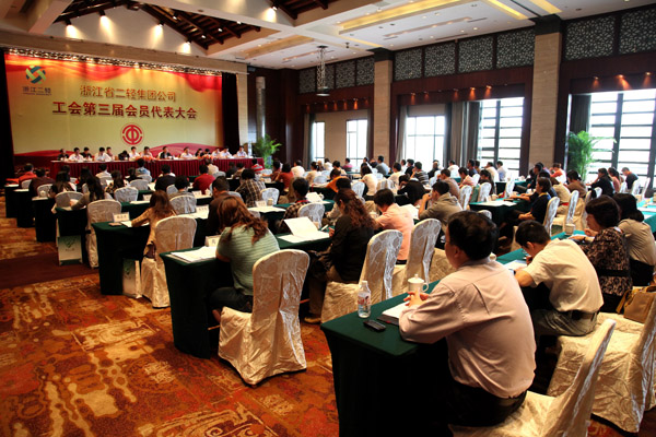 9月21日至22日,集團公司工會第三屆會員代表大會在臨安中都青山湖畔大酒店召開,來自集團公司各企業80名會員代表參加了會議。集團公司黨委書記、總經理沈志云和省總工會副主席姚炳甫蒞臨會議并致辭,集團公司副總經理孟慶武、徐旭陽、吳敏,省直屬企業工會工作委員會主任吳育杭、經費審查委員會主任葉榮茂,集團公司原工會主席殷長才出席會議。
