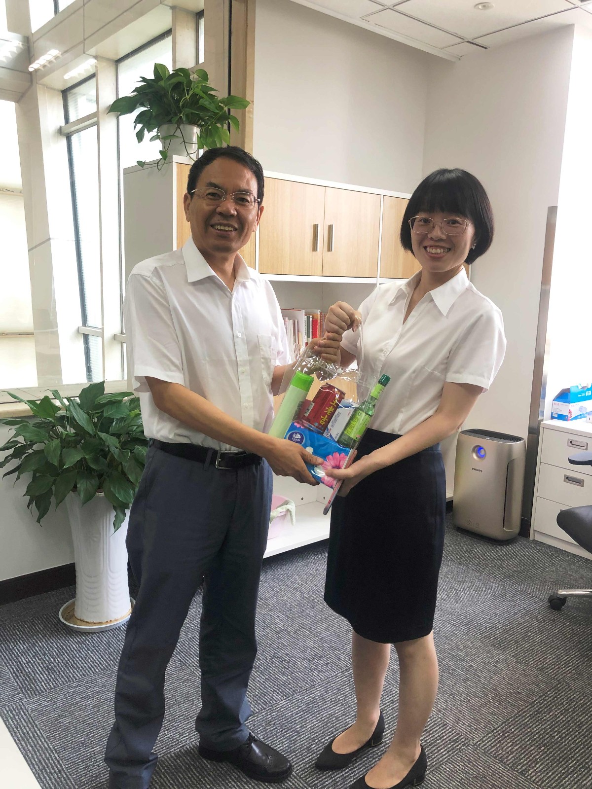 徐旭陽一行先后到廣杰公司7樓、14樓辦公區慰問職工,為他們送去防暑降溫用品并致以親切的問候。每到一處,他叮囑大家要科學合理安排好高溫季節的工作,結合實際做好防暑降溫。隨后徐旭陽一行重點檢查了廣杰公司消防安全工作。